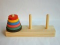 子供~大人まで楽しく脳トレ!左端の棒の全てのディスクを右端の棒へ全て移動させる。ルールは一回に一枚しか移動できない、下より大きなディスクは上に積めない、最初は少ない枚数からチャレンジ、枚数が増えると難易度アップ、6枚で63回が最短の移動回数(小さなお子さんはルール無しで遊ぼう)安全な植物性塗装を使用しています。サイズ W22cm D7cm H10cm 松材 [説明書付き]
