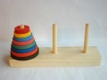 子供~大人まで楽しく脳トレ!左端の棒の全てのディスクを右端の棒へ全て移動させる。ルールは一回に一枚しか移動できない、下より大きなディスクは上に積めない、最初は少ない枚数からチャレンジ、枚数が増えると難易度アップ、8枚で255回が最短の移動回数(小さなお子さんはルール無しで遊ぼう)安全な植物性塗装を使用しています。サイズ W26cm D8cm H12cm 松材 [説明書付き]