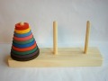 子供~大人まで楽しく脳トレ!左端の棒の全てのディスクを右端の棒へ全て移動させる。ルールは一回に一枚しか移動できない、下より大きなディスクは上に積めない、最初は少ない枚数からチャレンジ、枚数が増えると難易度アップ、10枚で1023回が最短の移動回数(小さなお子さんはルール無しで遊ぼう)安全な植物性塗装を使用しています。サイズ W30cm D10cm H14cm 松材 [説明書付き]